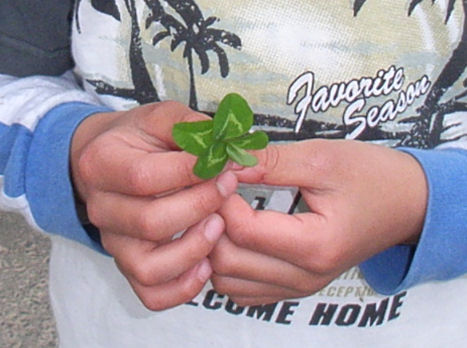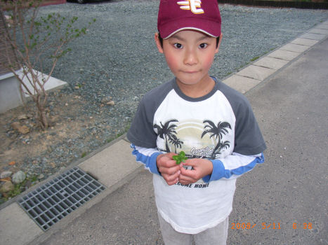 途中、工事中の保育園の近くで、見つけた5つ葉のクローバー。
