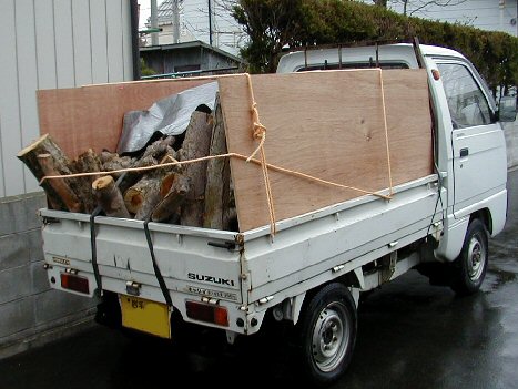 午前中、江刺の稲瀬から薪木(りんごの木)運び2往復(1往復27km)。