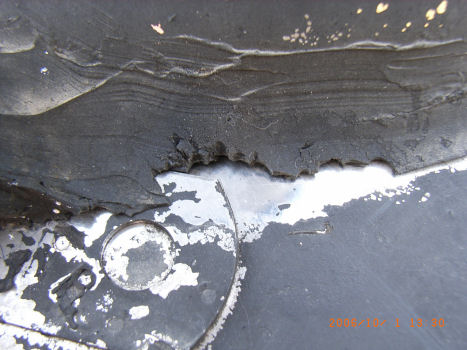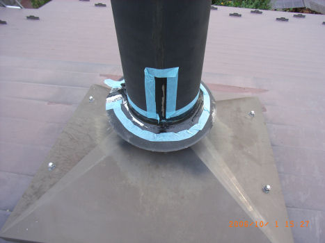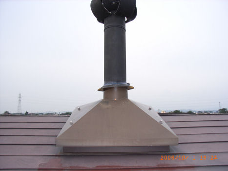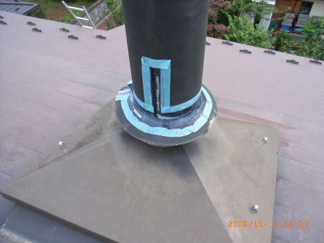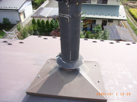 先日の大雨のとき煙突を伝わって雨漏りがあったので早々に原因を突き止めて補修しなきゃいけないなと思っていた。 天気が良くてうるさいじゃまはり坊主が出かけて居なかったので本日決行した。 煙突掃除は室内側からやる方法をとった。 室内煙突をはずして本体の掃除をしていて一つ発見があった。 かれこれ8年使っていて一度も操作したことがなかったレバーで機能しない飾りかなと思っていたのがガチャガチャしていたら動いたのだ。 これは火室から直接煙突にぬける煙道のようだ。 初期設定ではそれがかなりしぼられていて2ミリ程度の隙間があいた状態になっていてそのまま8年間使い続けていた。 たぶんこれを開けると火力が強くなってすぐ薪が燃え尽きてしまうのだろうなと思う。 煙突掃除の次は雨漏り修理。 たぶん水切り金物廻りのシールが切れたのだろうと思っていた。 登ってくまなく見てみると疑わしい所を2箇所発見した。 そこをシールの重ね塗りで対処した。 養生テープを張って、たぶん煙突屋さんはやっていなかったと思われるシール前のプライマー処理もしてシリコンシーリングで仕上た。 ま素人施工にしては上々の出来栄えだと思う。 それから 天窓・・・ 室内側からは去年あたりからわかっていたのだが、蜘蛛の巣かもしれないと暢気に構えていた。 今回屋根に登ってみてまじかで見てみると天窓(嵌め殺し窓)のペアガラスの室内側の網入りガラスにヒビが入っていた。それも2ヶ所。 ワイヤーは錆びていなかったので錆びによる膨張割れではなく、過激な温度変化による鉄とガラスの膨張率の違いによるヒビ割れと推測される。 これがあるから網入りは使いたくないんだよなぁ。 外部側透明ガラスは割れていないのでしばらくは雨漏りの心配はないが、次回交換するときはワイヤレスのペアガラスにしておこう。