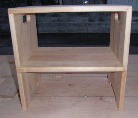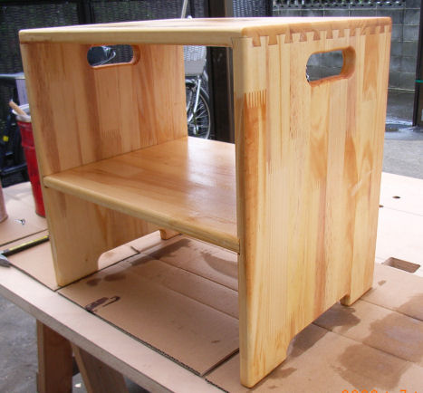 ばあさんが玄関で上がり降りをしやすいように、ちょっとした椅子をこしらえてあげた。