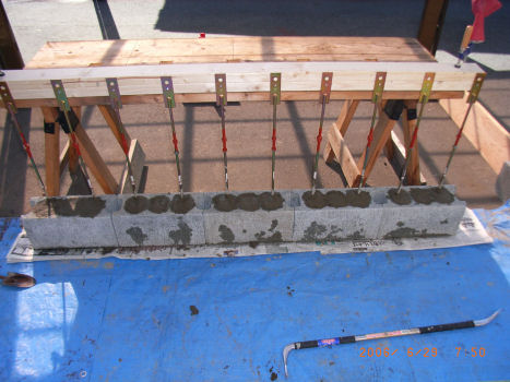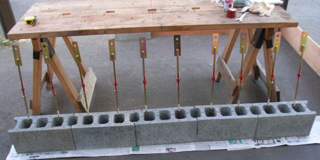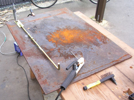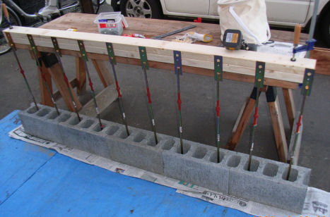 15センチ厚のコンクリートブロックに、羽子板ボルトとアンカーボルトを接合した脚を2本埋め込み、コンパネにトタン板で包んだ看板をとりつけペンキで名前を入れる予定。