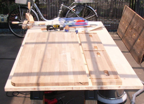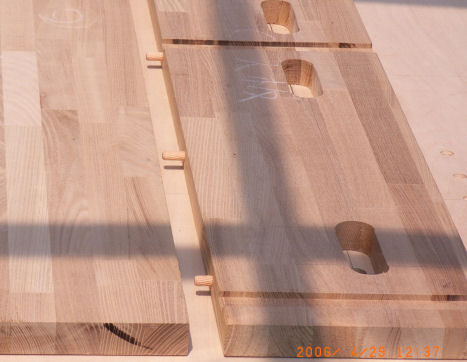 通販で注文していたビスケットジョイントカッターが在庫切れだということで、仕方なくダボ接合とした。