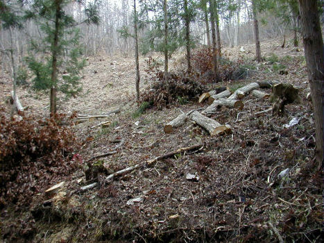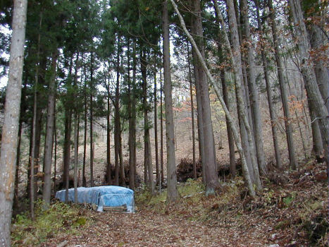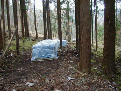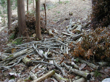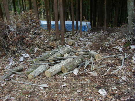 植菌が終わったホダ木を、運搬して1箇所にまとめて、