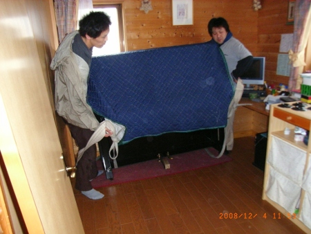 でもA君のグランドピアノの引越しに来ていた専門のピアノ運搬業者の方が一応現場を見てみましょうということで見てもらったら、アッサリ 「できますよ」と言われてしまった。