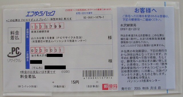 実質 パソコン3R推進センターの処理料金は¥3500円ってことか。
