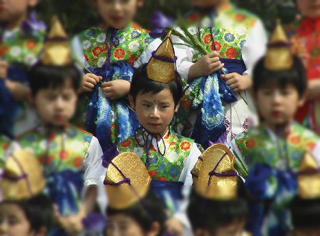 年長組はこのようにきらびやかな衣装をきてお化粧もします。